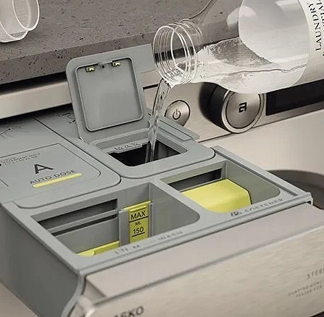 В дозатор стиральной машины встроены два съемных резервуара системы Auto Dose™ объемом по 1,1 литра — для моющего средства и кондиционера, которых хватает на 27 циклов стирки. Каждый контейнер оснащен датчиком, который показывает, сколько стирок осталось до дозаправки. Система Auto Dose™ гарантирует отличное качество стирки без перерасхода моющих средств, а это меньше затрат и меньше воздействие на окружающую среду. При необходимости вы всегда можете воспользоваться стандартными отсеками для порошка или других средств.