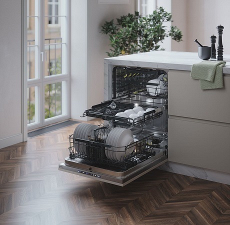 • 15 программ: ЭКО, Интенсивная, Автоматическая (Ежедневная), Быстрая, По времени, Верхняя корзина, Нижняя корзина, Гигиена, Ополаскивание, Хрусталь, Предварительный подогрев, Пластик, Самоочистка // Температура мойки от 45 до 70°C.