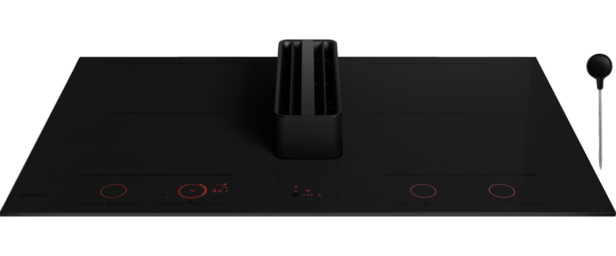 По умолчанию вытяжка автоматически поднимается при работе индукционной варочной панели. В поднятом положении вытяжка улавливает пары более эффективно особенно если вы готовите в высокой посуде.