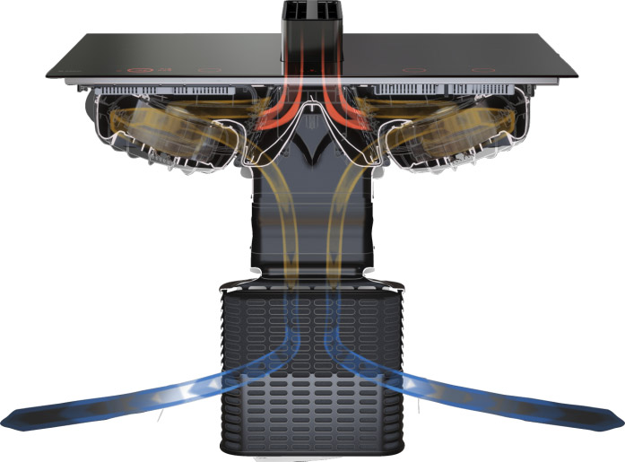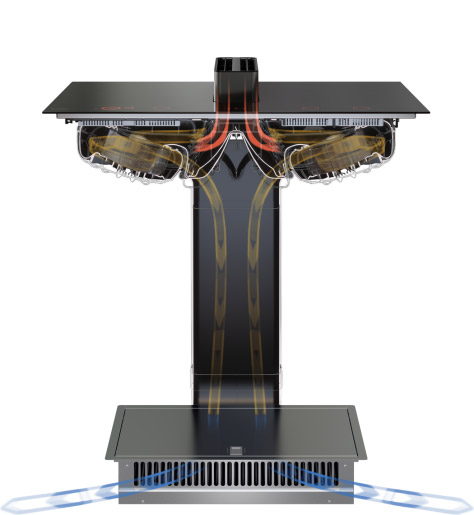Вытяжка оснащена поднимающимся вытяжным модулем