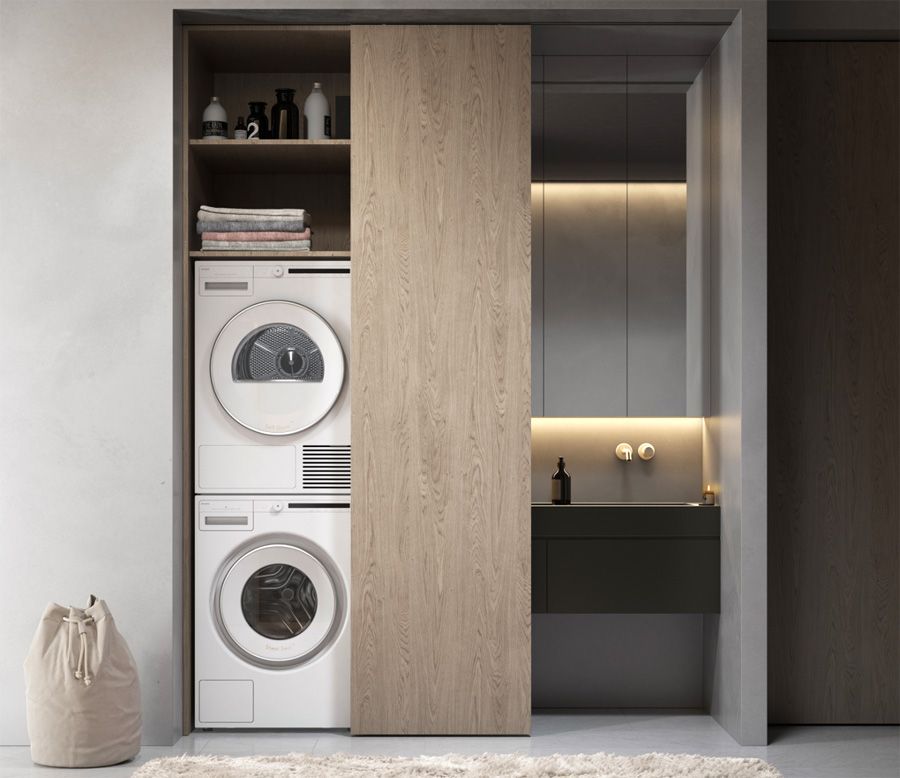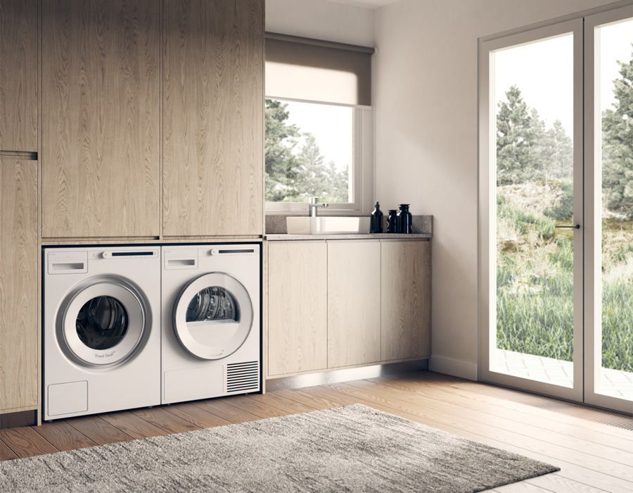 Простая установка сушильной машины на стиральную машину с помощью набора для установки на стиральную машину, который входит в комплект.